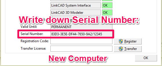 Note: If LinkCAD tells you that the serial number is not valid, you will have to first install the same version of LinkCAD on your current computer. Just execute the same LinkCAD Setup on both computers, and repeat the above procedure.